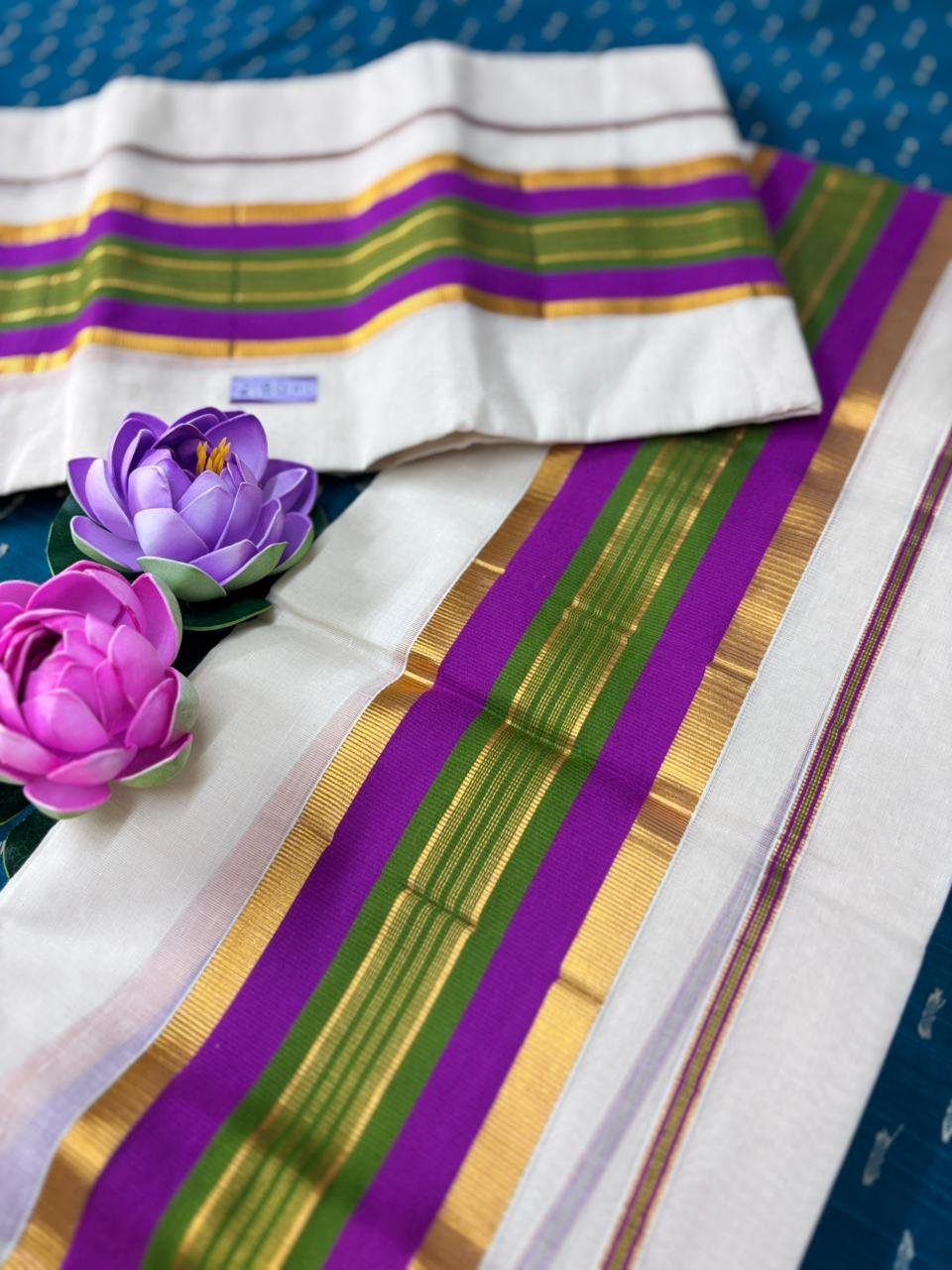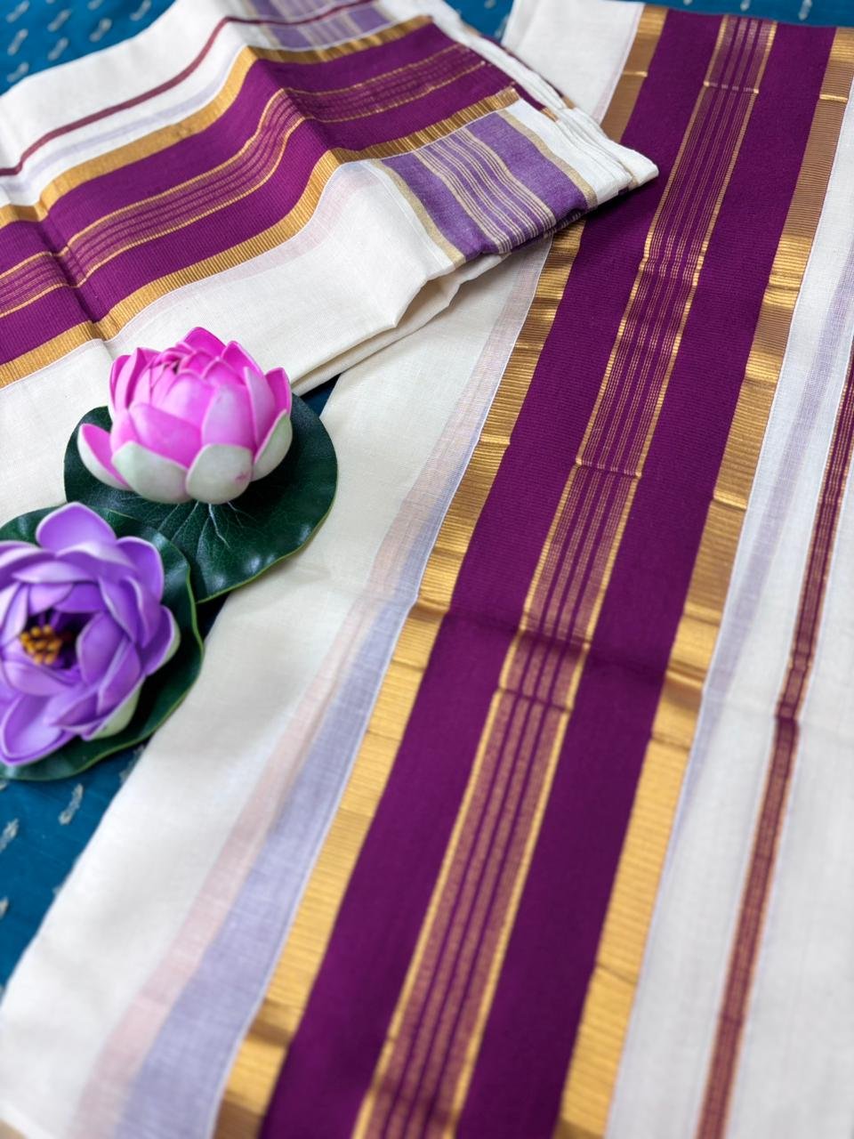 It is a premium orginal kasavu cotton set mundu in 4 inch golden jari available at Noolaadai. It is a luxury premium piece set mundu that beautifully marries traditional Kerala craftsmanship with modern design elements. This set mundu is perfect for those who appreciate a blend of classic and luxury wear.
