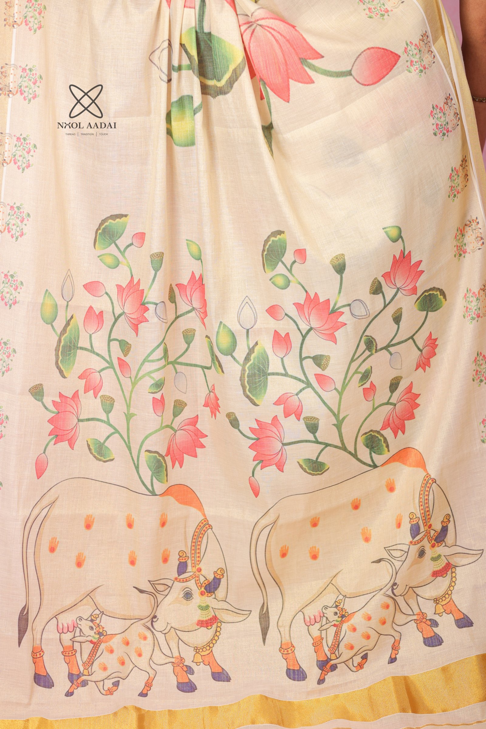 Malarum Mizhikal – Digital Printed Kerala Saree