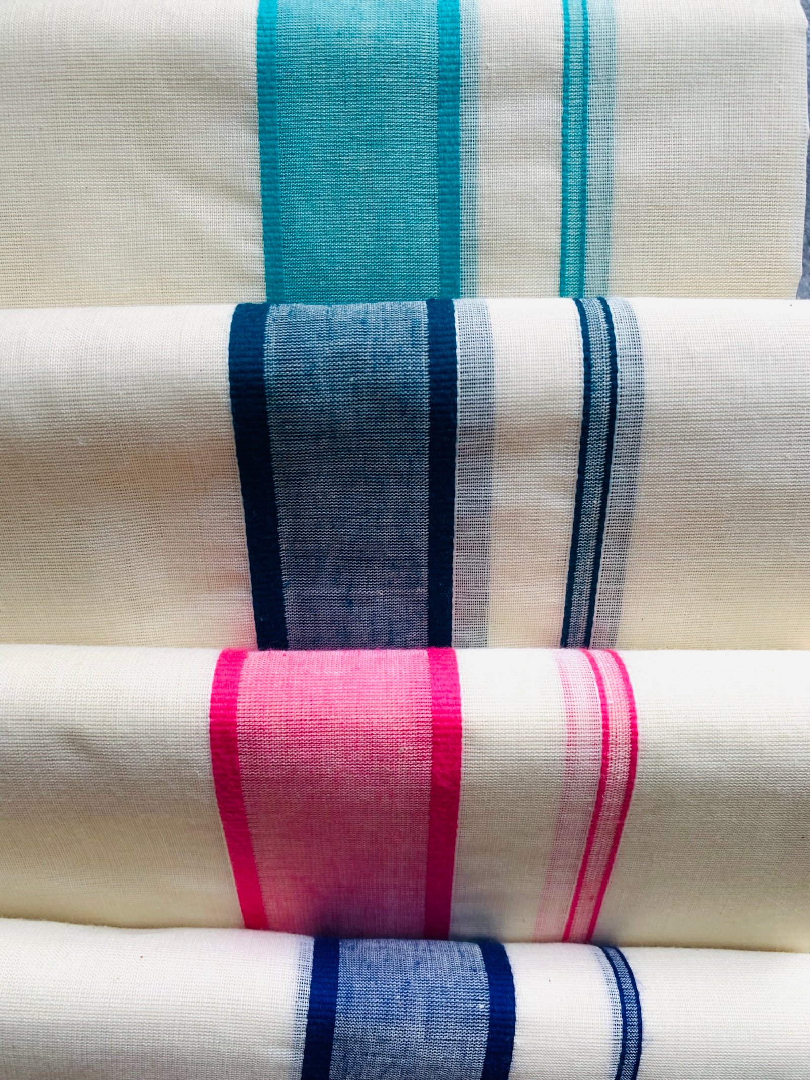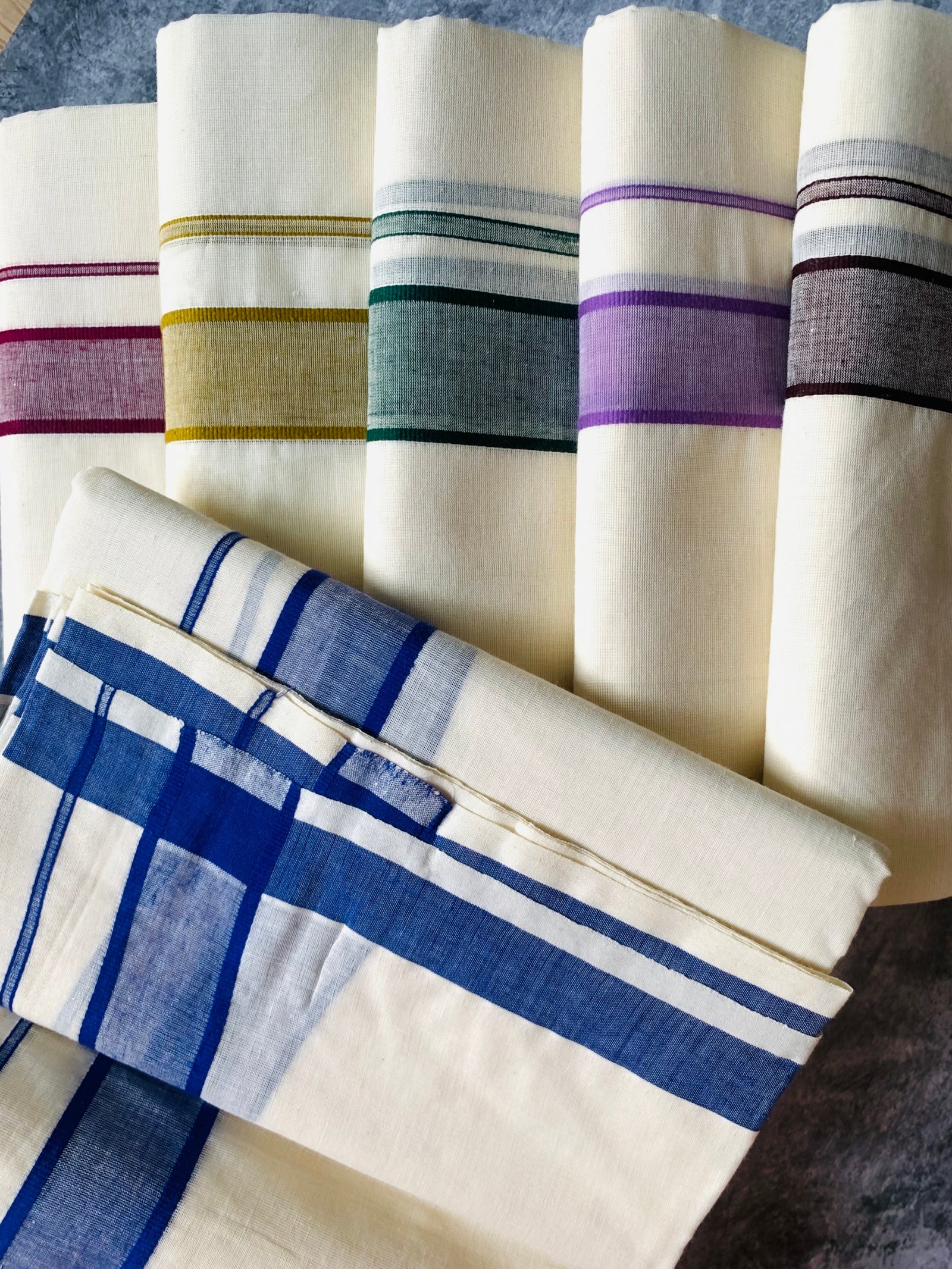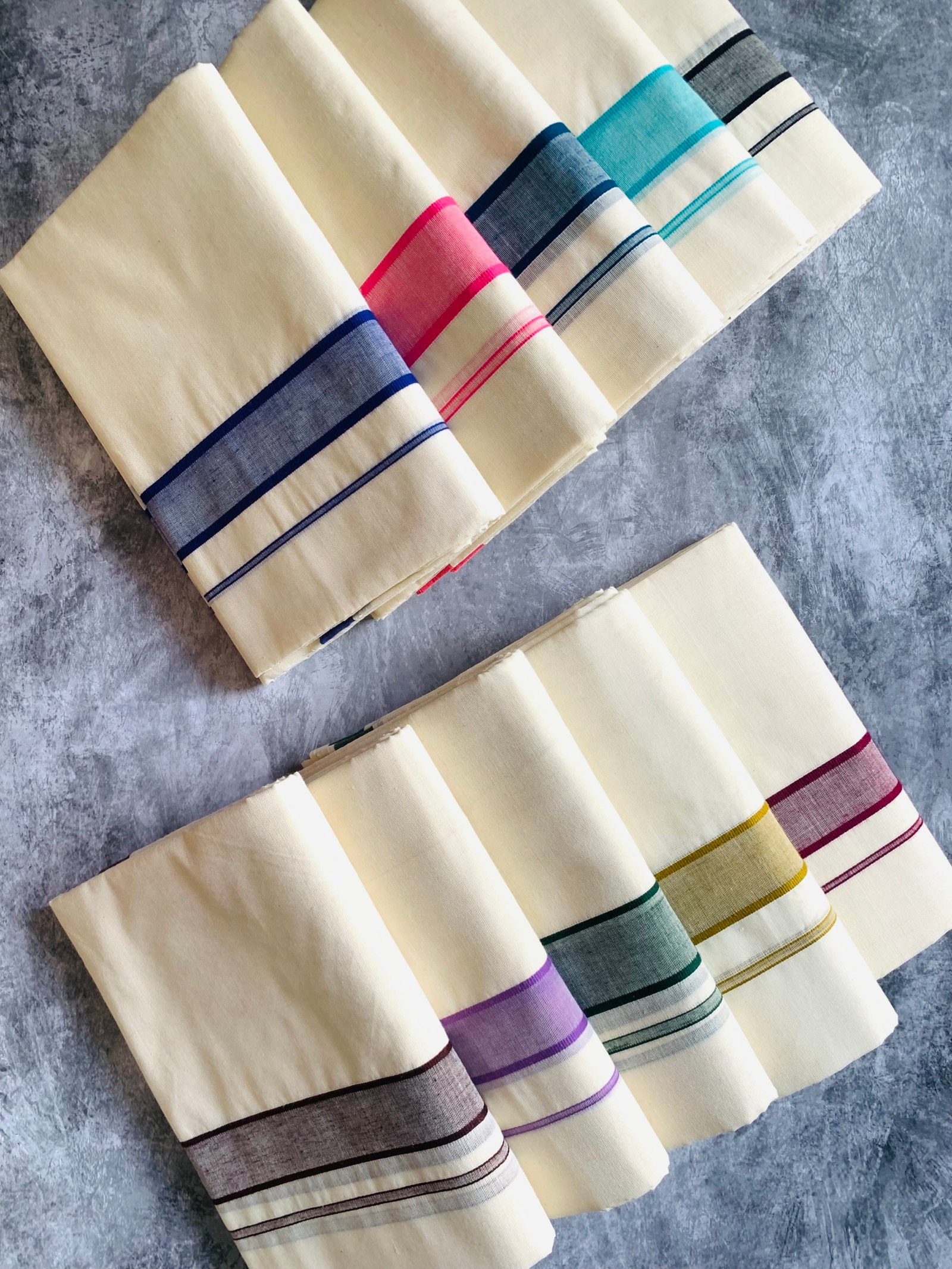 Noolaadai Elegant Cream Cotton Dhoti with Dual-Tone Borders