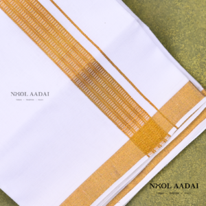 Experience the timeless elegance of Kerala’s heritage with Noolaadai’s Kerala Mundu, crafted with care by our esteemed weavers. Made from 100% cotton yarns, each mundu embodies comfort, breathability, and durability. Elevate your style with this symbol of tradition and sophistication. Invest in authenticity, choose the original handloom finishes mundu for men.
