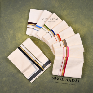 Experience the timeless elegance of Kerala’s heritage with Noolaadai’s Kerala Mundu, crafted with care by our esteemed weavers. Made from 100% cotton yarns, each mundu embodies comfort, breathability, and durability. Elevate your style with this symbol of tradition and sophistication. Invest in authenticity, choose the original handloom finishes mundu for men.